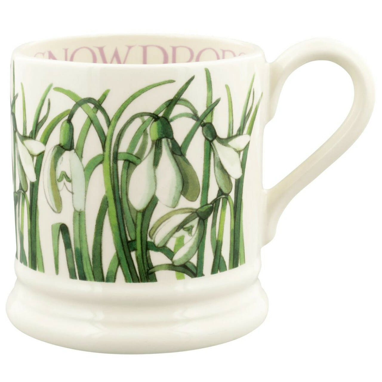 The beauty of the first flowers of spring peeping through the snow is brought alive in these lovely Half Pint Mugs.